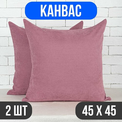 Наволочки декоративные канвас Mara, потайная молния, темно-розовый, 45х45 см, 2 шт. / ZenginTex