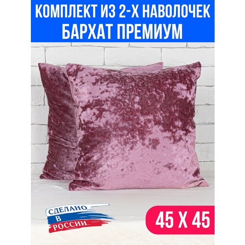 Наволочки декоративные бархат, плюш, потайная молния, темно-розовый, 45х45 см, 2 шт. / ZenginTex