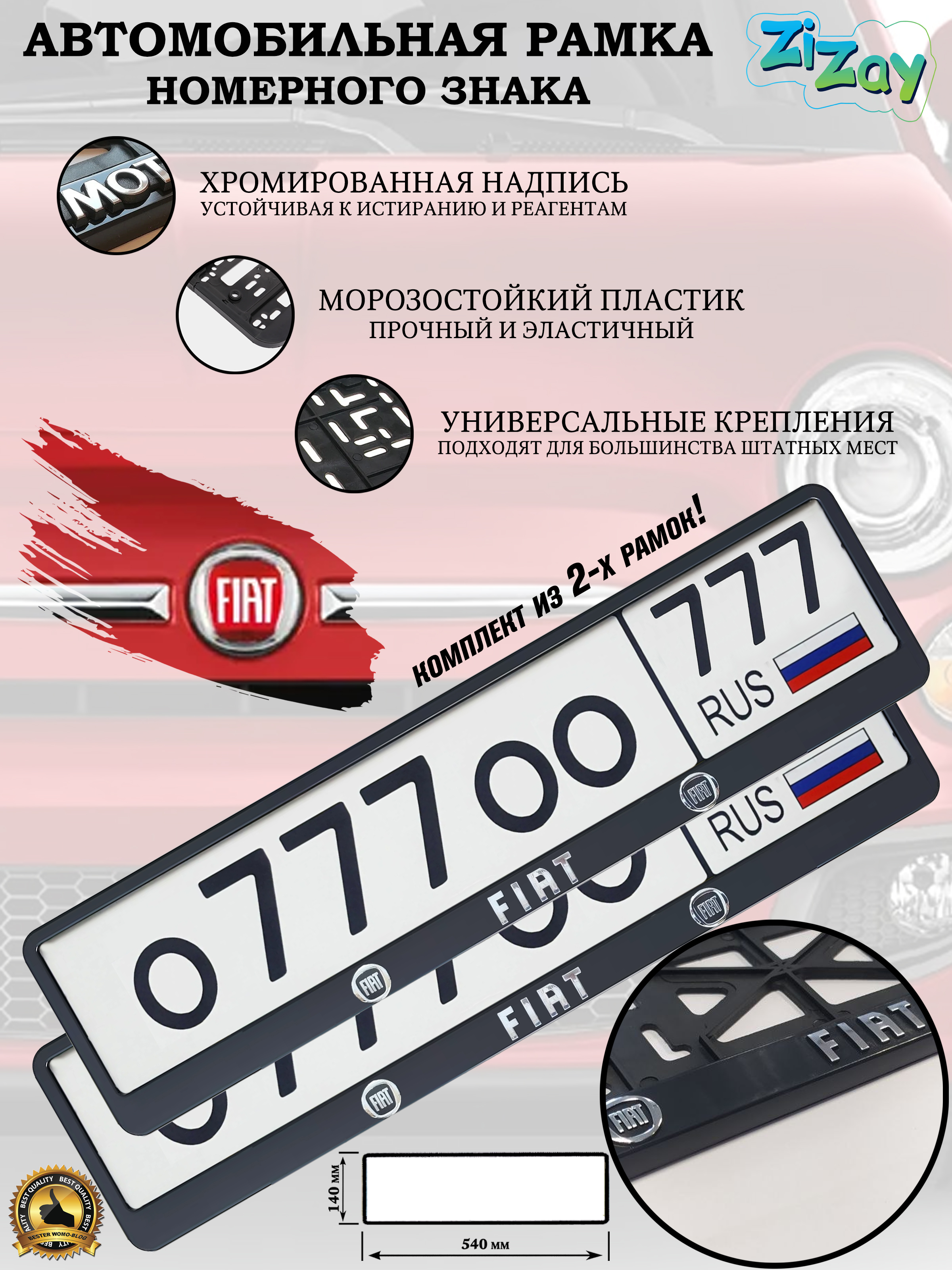 Рамка номерного знака ZiZay "FIAT", пластик, черная с рельефной надписью, комплект 2 шт. к-1121-FT-C