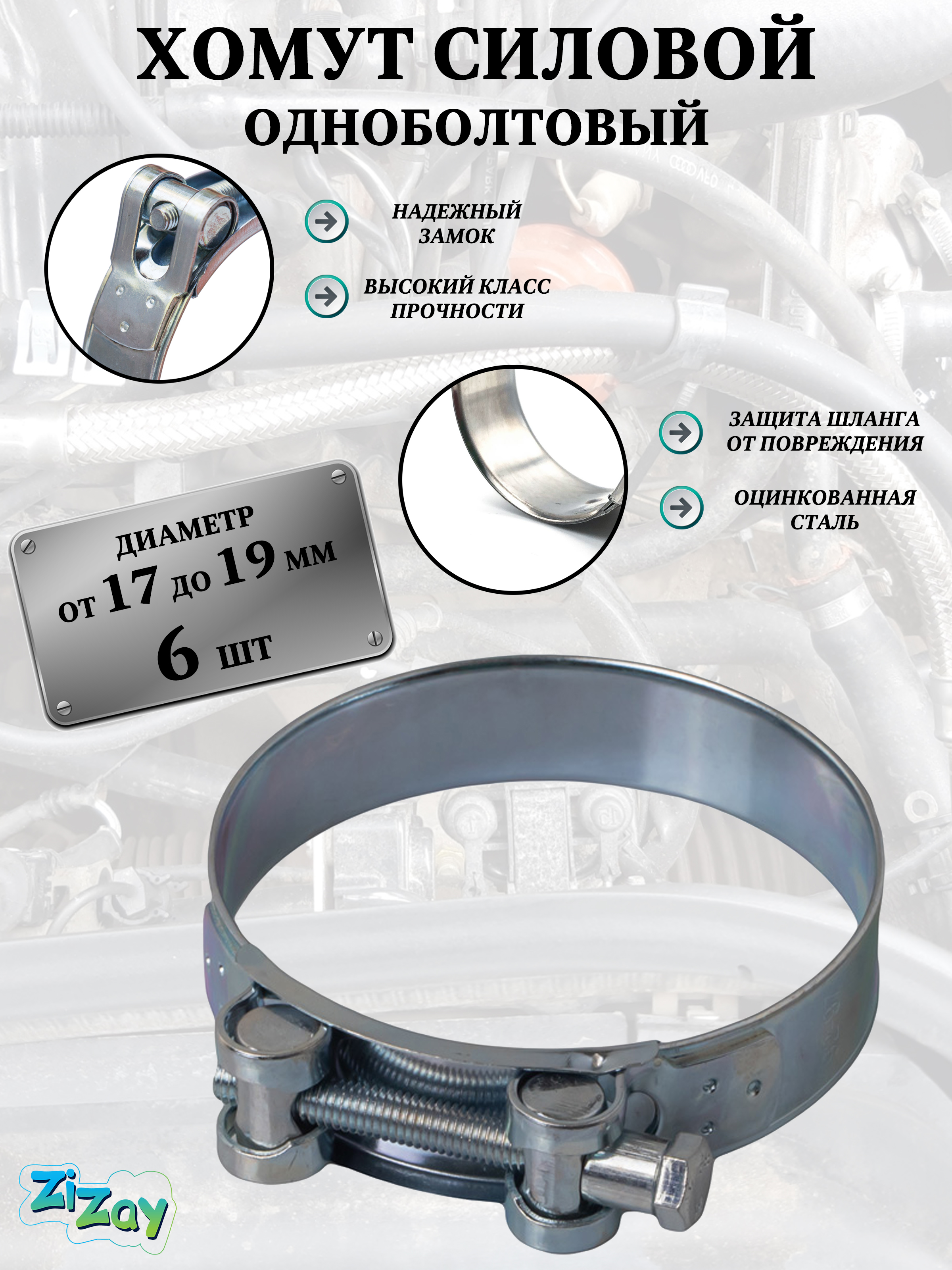 Хомут ZiZay, силовой, одноболтовый, 17-19 мм., комплект 6 шт. к6-05-065