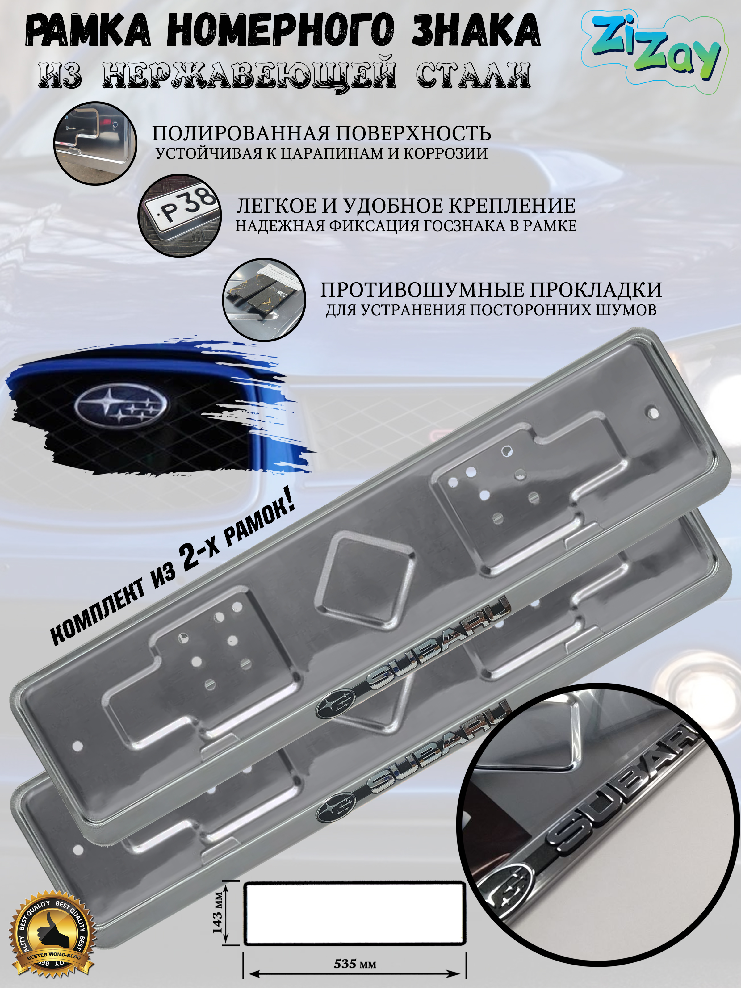 Рамка номерного знака ZiZay "SUBARU", стальная, серебристая, рельефная надпись, комп. 2 шт к-AB-029-SU-C