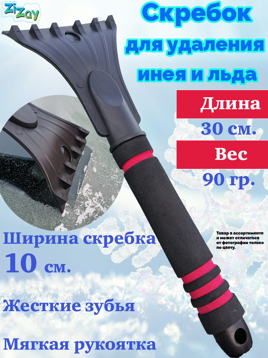 Скребок ZIZAY, для удаления инея и льда, мягкая ручка, длина 30 см, ширина 10 см. ZZ0039