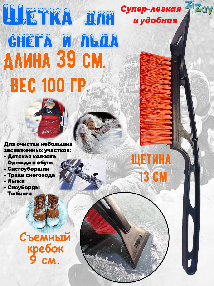 Щетка ZiZay, для удаления инея, льда и снега, съемный скребок, компактная, длина 39 см.