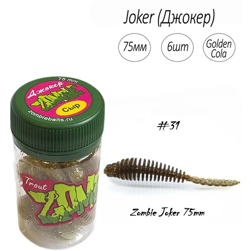 Силиконовая приманка для рыбалки Zombie Joker (Джокер) 75 мм, 6шт, Запах сыр, Golden Cola (золотая кола), мягкая приманка для ловли форели.