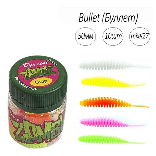 Силиконовая приманка для рыбалки Zombie Bullet 50 mm, 10шт, запах сыр, микс №27, мягкая приманка для ловли форели.