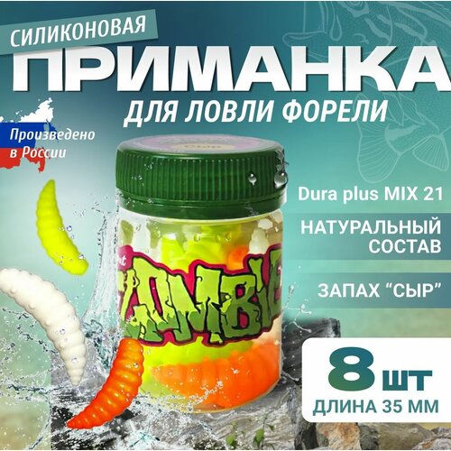 Силиконовая приманка для рыбалки Zombie Dura plus 35 mm, 8шт, запах сыр, микс №21 (2 упаковки), мягкая приманка для ловли форели.
