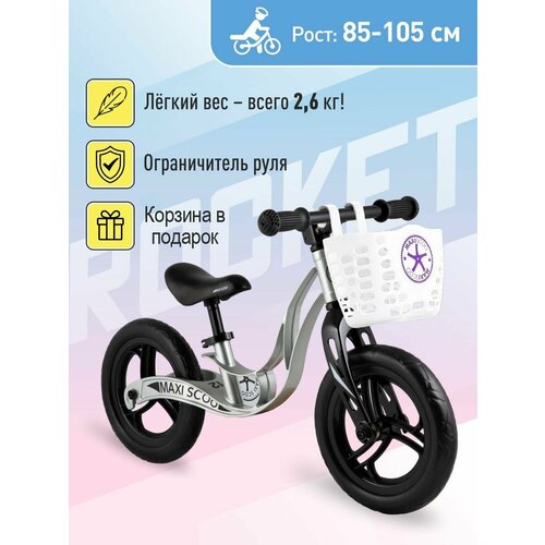 Детский Беговел MAXISCOO на магниевой раме Rocket (2022) Стандарт Плюс Колеса ЭВА 12 Графит