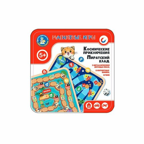 Игра магнитная «Космические приключения. Пиратский клад», в жестяной коробке