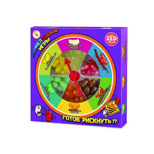 Мармеладские игры это новая серия необычных и очень веселых настольных игр. В каждой упаковке Мармеладских игр содержатся по два типа жевательных бобов одинаковых на вид, но совершенно разных на вкус. Например, боб со вкусом колы выглядит точно так же, как со вкусом кошачьего корма. Игроки по очереди вращают стрелочку и берут боб выпавшего цвета, затем едят, не зная, что их ждет! Проигрывает тот, кому попался адский вкус, и игрок не смог его съесть.