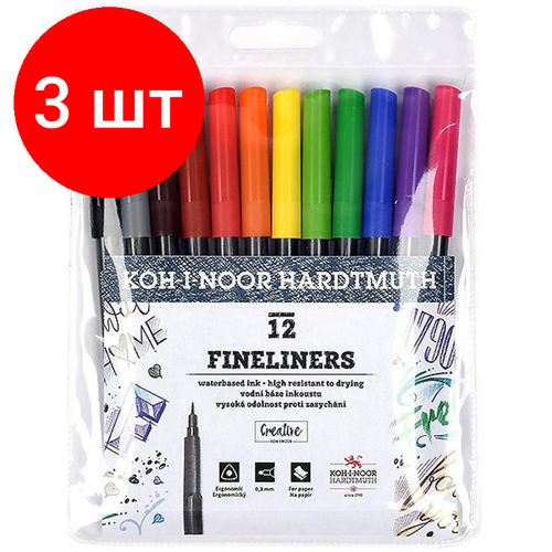 Комплект 3 наб, Набор линеров KOH-I-NOOR FINELINERS 0.3мм 12 цв ПВХ 777021AB01TE