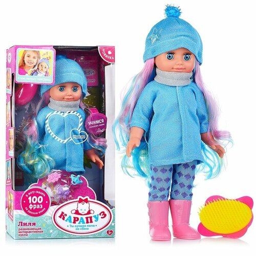 Кукла Карапуз Лиля 40 см, Абвгдйка песня 100 фраз, пряди, тени, 6 аксессуаров (Y40D-LILYA-CH-21-RU)