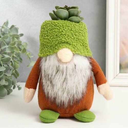 Кукла интерьерная "Гном с суккулентом на голове" 15х9х20 см