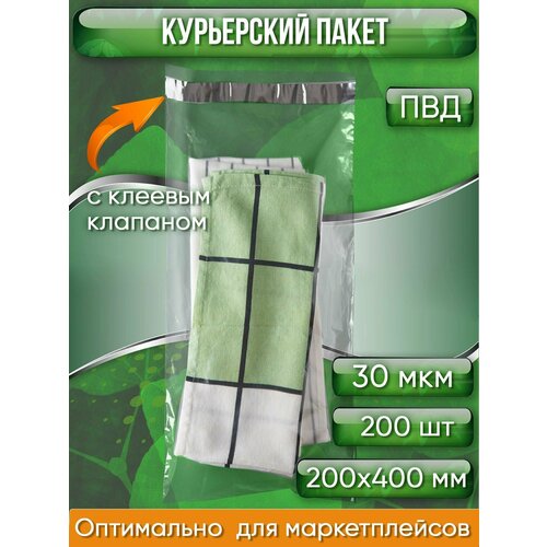 Курьерский пакет, прозрачный, 200х400+40 мм, с клеевым клапаном, 30 мкм. (сейф пакет) 200 шт.