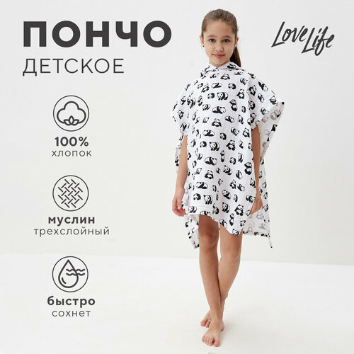 Пончо муслиновое детское LoveLife "Панды" 100% хл, 4-сл, 235гр/м2