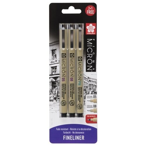 Sakura Набор капиллярных ручек Pigma Micron 3шт (0.5мм 0.8мм + Ручка Pigma Micron PN)