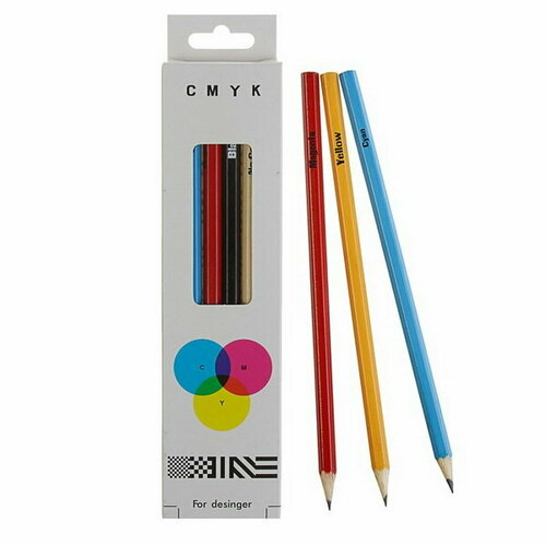 Карандаш чернографитный (простой) HB, Сибирский кедр "CMYK" , заточенный, дерево, шестигранные, картонная упаковка, европодвес, микс (комплект из 180 шт)