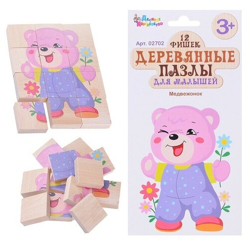 Пазлы деревянные для малышей "Медвежонок" (12 эл) европодвес