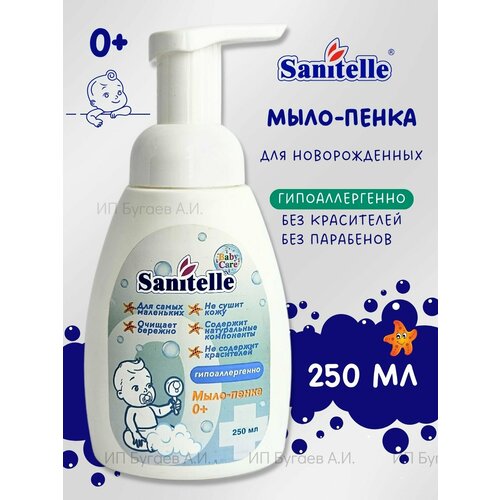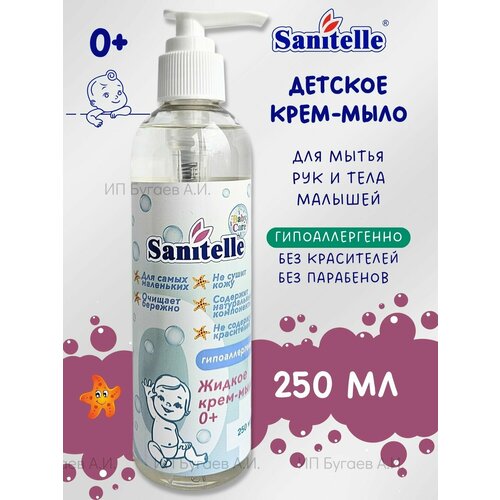 Имеет сертификат гипоаллергенности Sanitelle Крем-гель для купания 0+ с экстрактом корня мыльнянки разработан специально для нежного и бережного ухода за малышом. Подходит для тех мам и пап, кто хочет использовать только качественные средства по уходу за кожей ребёнка с первых дней его жизни. Преимущества: -бережно очищает -для новорожденных -содержит натуральные ингредиенты -в составе экстракт мыльнянки, который способствует смягчению сухой и раздраженной кожи -не сушит кожу как
