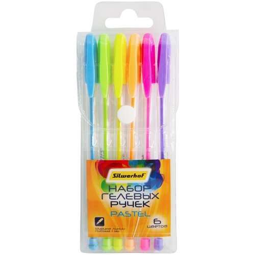 Набор ручек гелевых Silwerhof Солнечная коллекция Pastel d - 1.0 мм блистер 6 шт, 6 цветов, коробка 12 шт. (1548236)