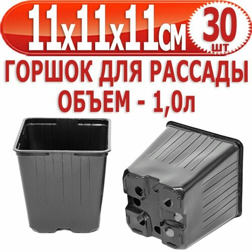 30 шт Горшок для рассады квадратный 11х11х11см, объем - 1,0л, формованный AMINA