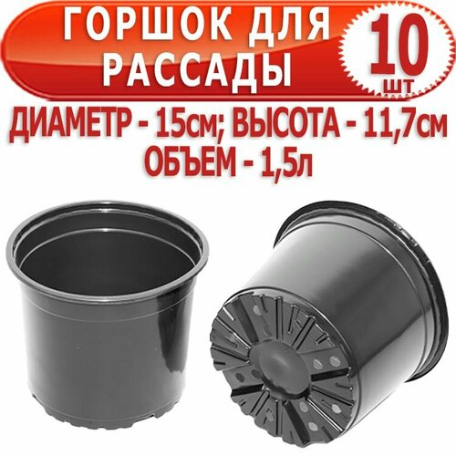10 шт Горшок для рассады круглый диаметр 15см, высота 11,7см, объем - 1,5 л, литье AMINA