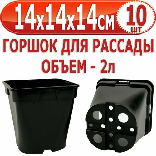 10 шт Горшок для рассады квадратно-круглый 14х14х14см, объем - 2,0л, формованный AMINA
