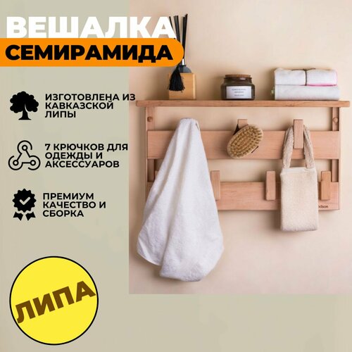 Вешалка для бани Семирамида Woodson липа, 34*60 см, настенная