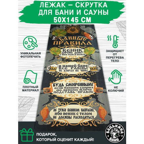 Коврик для бани и сауны 145х50 см, лежак из войлока подстилка сидушка "Банные правила"