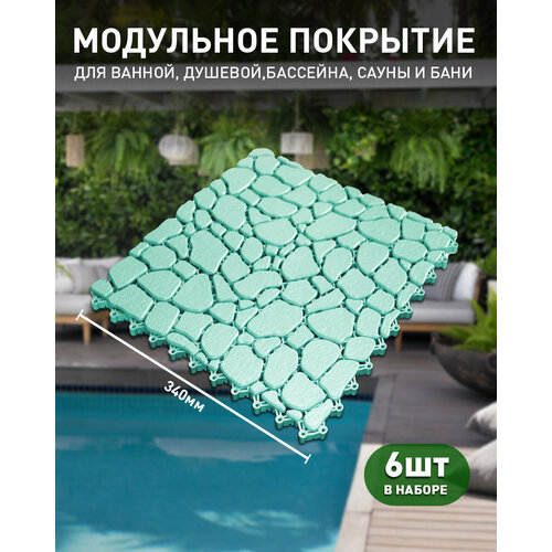 Коврик для ванны, бассейна, сауны, бани антискользящий, Aqua Stone, 6 модулей, мятный