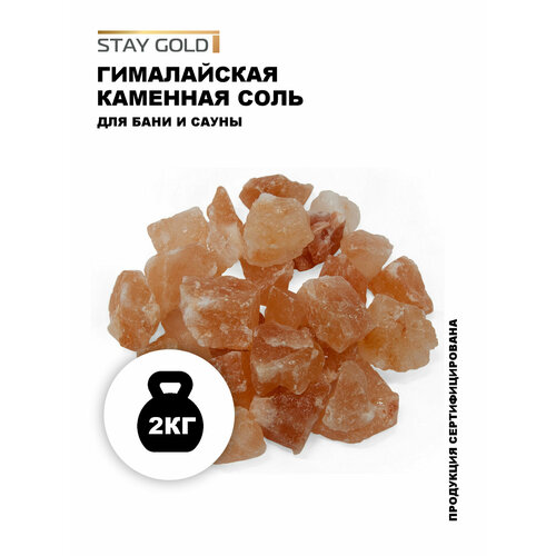 Соль для бани Stay Gold, гималайская, кусковая, каменная, розовая, 2 кг