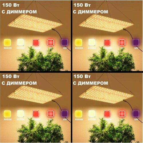Комплект светильников для растений с диодами Samsung LM281b+4 шт/ quantum board/модель QBD 1500 MAX 150Вт/ 4000К, 450-660 нм/ фитолампа с полным спектром ИК УФ