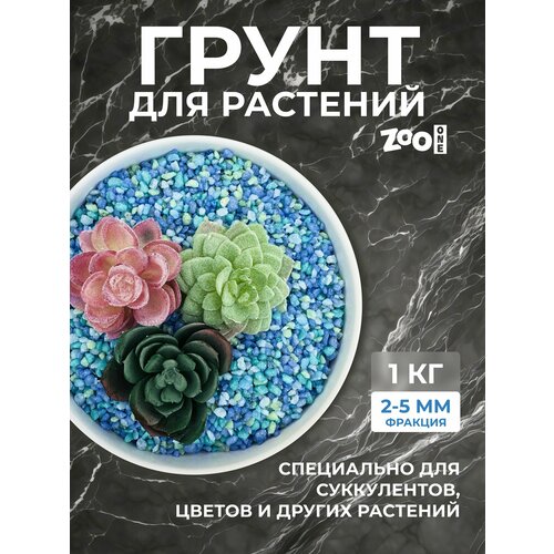 Натуральный грунт для кактусов, суккулентов и растений, Zoo One, природный материал, "Синий+кварц", (фракция 2-5 мм) 1 кг, GR15-0621