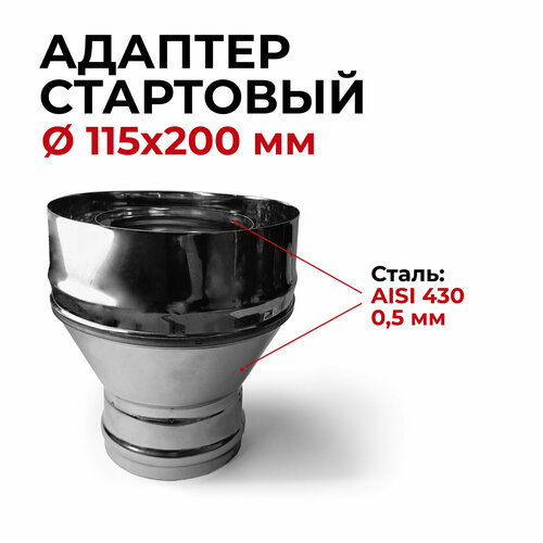 Адаптер стартовый М, переход моно-термо для дымохода D 115x200 мм (0,5/430*0,5/430) нерж/нерж "Прок"