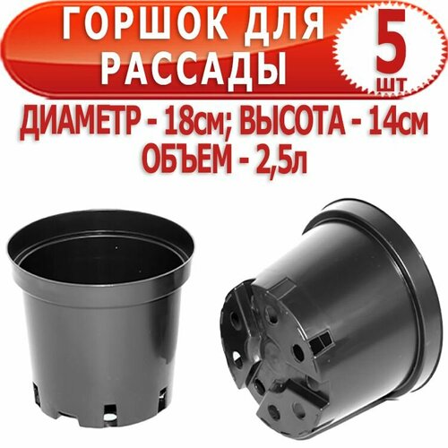 5 шт Горшок для рассады круглый диаметр 18см, высота 14см, объем - 2,5 л, литье AMINA