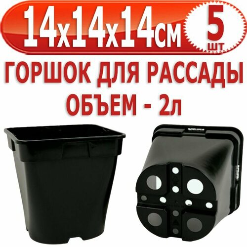 5 шт Горшок для рассады квадратно-круглый 14х14х14см, объем - 2,0л, формованный AMINA