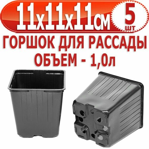 5 шт Горшок для рассады квадратный 11х11х11см, объем - 1,0л, формованный AMINA