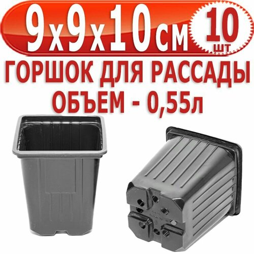 10 шт Горшок для рассады квадратный 9х9х10см, объем - 0,55л, литье AMINA