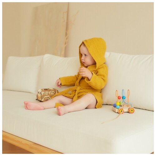 Халат детский муслиновый LoveLife (2 года, рост 92-98 см), цвет горчичный, 100% хлопок, 235 гр/м2