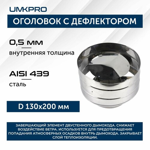 Оголовок с дефлектором, ф 130х200, AISI 439/439, 0,5мм/0,5мм, (К), h230мм