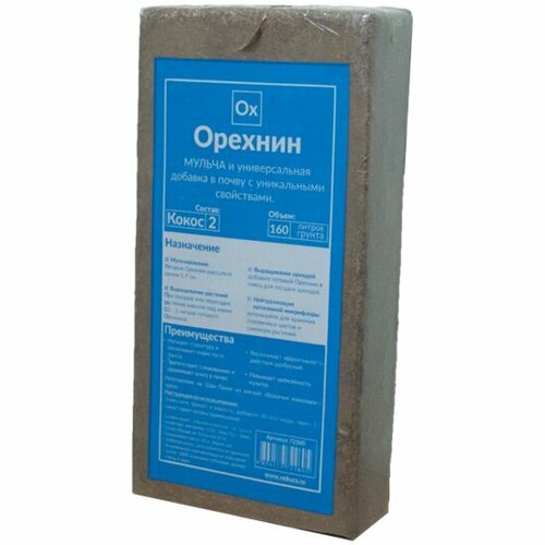 Кокосовый брикет Орехнин-2 Nekura 160 литров мульча