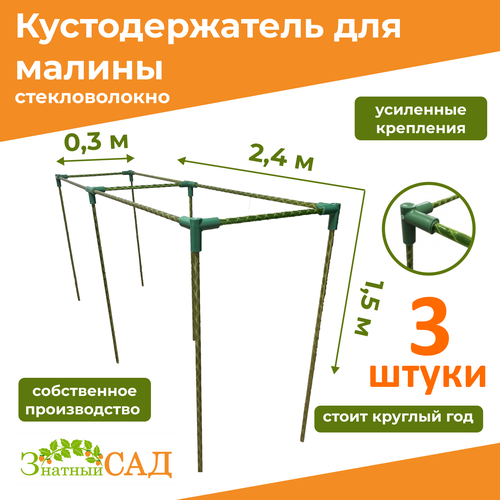 Кустодержатель для малины, цветов, «Знатный сад», 180х30х150см, стекловолокно с УФ-защитой, 3 штуки
