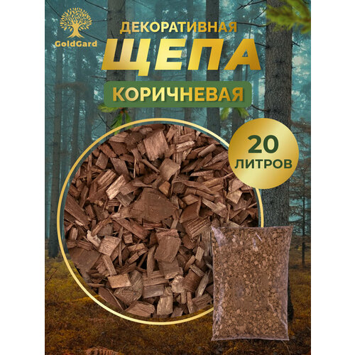 Щепа декоративная коричневая 20 л грунт мульча из коры сосны лиственницы GoldGard