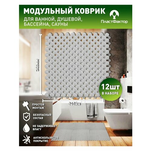Коврик для ванны, бассейна, сауны, бани антискользящий, Aqua, 12 шт, светло-серый