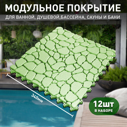 Коврик антискользящий для ванны, бассейна, сауны, бани - Aqua Stone, 12 модулей