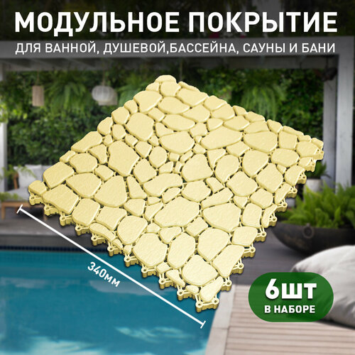 Коврик для ванны, бассейна, сауны, бани антискользящий, Aqua Stone, комплект 6 модулей, песочный (RAL 095 90 20)