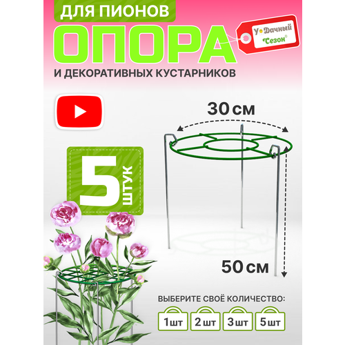 Опора для пионов сетка «Удачный Сезон», d=35 см, высота - 50 см (Набор 5 шт)