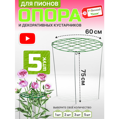 Опора для пионов регулируемая сетка «Удачный Сезон», d=60, высота - 75 см (Набор 5 шт)