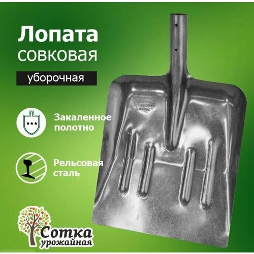 Лопата снеговая стальная совковая 333х370х490мм рельсовая сталь для зерна урожайная сотка S504-14