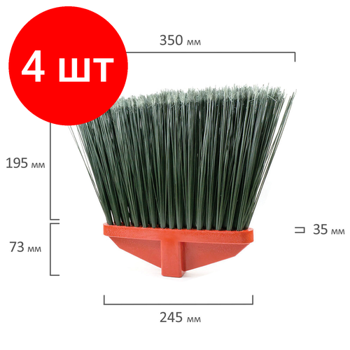 Комплект 4 шт, Метла синтетическая веерная 29х26 см, без черенка, крепление еврорезьба, №2, LAIMA EXPERT, 601828