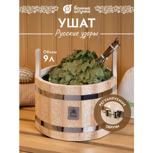 Ушат шайка 9 л "Банные штучки", с нержавеющей вставкой и системой регулировки обручей, липа